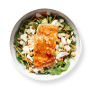 Arugula, Egg Whites, Chickpeas, Cucumber, Carrots, Quinoa, Almonds & Grilled Salmon Suggested Dressing: Lemon Vinaigrette